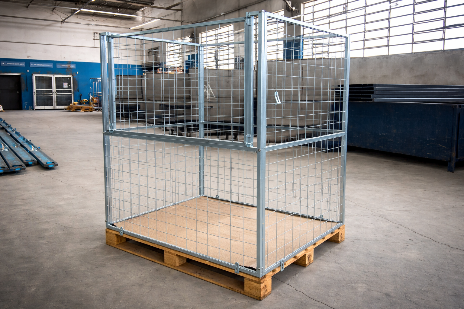 A Gaiola Aramada da Megabox é uma solução prática e resistente para armazenamento, transporte e organização de mercadorias. Com estrutura reforçada e design empilhável, este equipamento é ideal para empresas que buscam eficiência logística, facilidade de manuseio e reutilização em centros de distribuição, estoques industriais e operações de logística reversa.